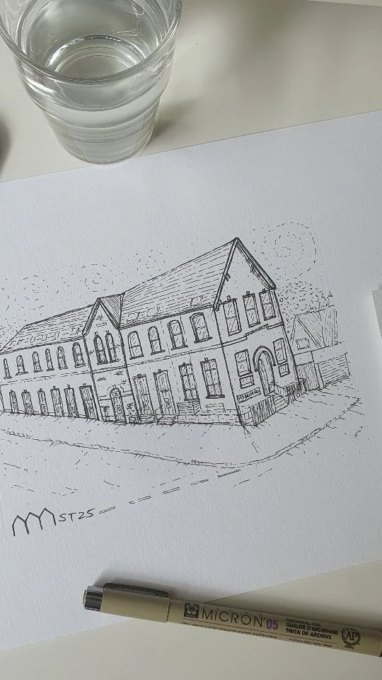 Black and white, hand drawn illustration of your favourite place - Home, wedding venue, shop front, holiday memoriesโฆ You choose!